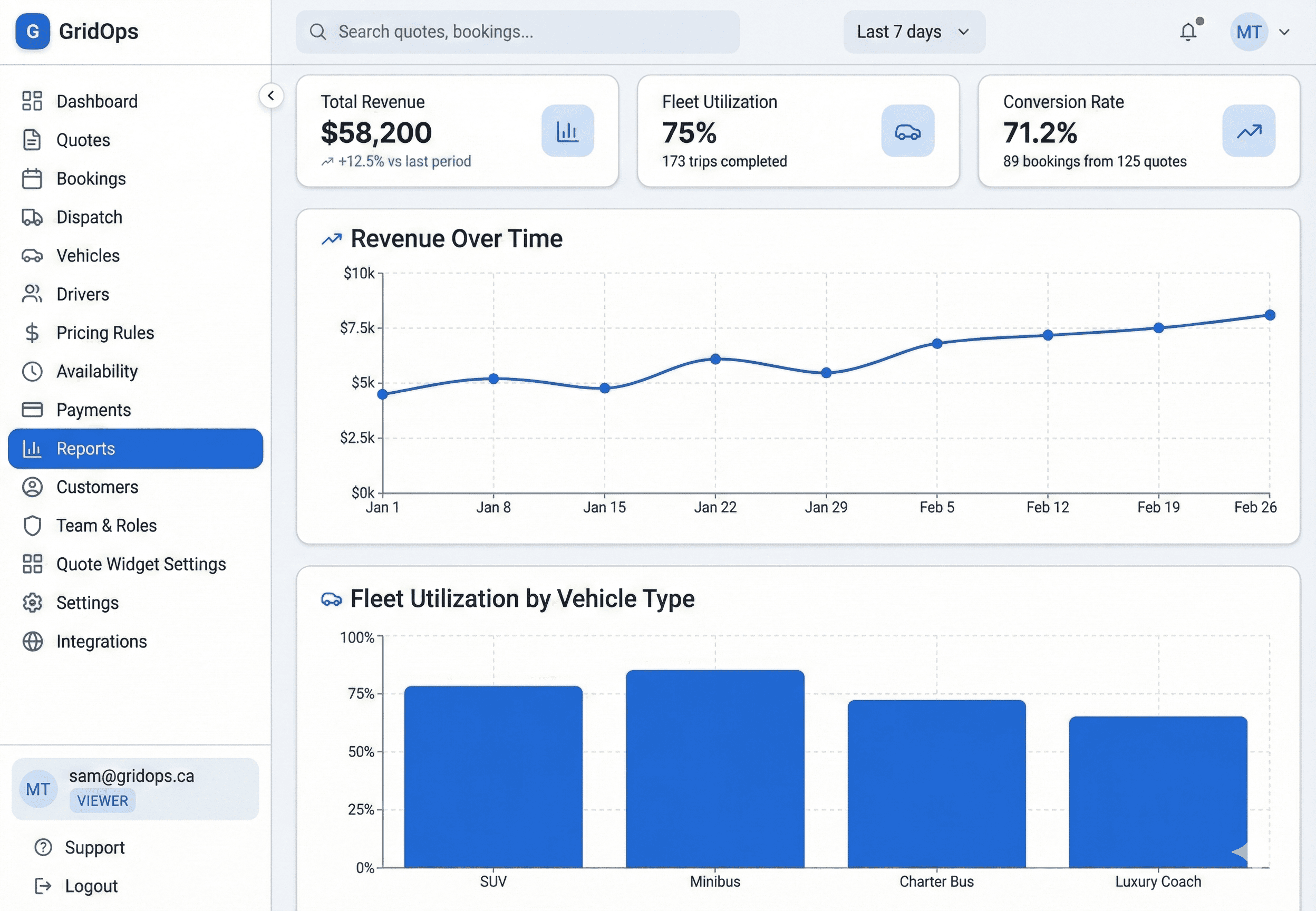 Reporting & Analytics: Stop guessing. View your fleet's performance and revenue metrics in real time.